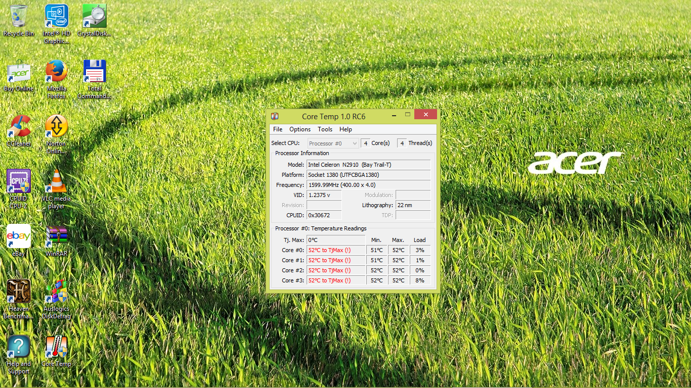 Core Temp szerint 51 – 52 fok között mozog a processzorunk hőmérséklete.