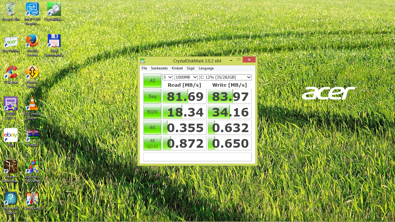 De azt kell mondjam netezés, film nézés, skype, office alkalmazásokon kívül más dolgot eléggé nehézkesen futtatott. Egy 8GB-os iso kibontásával eléggé megküzdött. De hozzá teszem, amit a videókban is mondok, hogy Windows 8-cal biztos nem használnám, talán 8.1 és abból is 32bit, ha nincs csak 4GB memória. Mondjuk az AcerShop oldalán, már 8.1-es rendszerrel vannak a gépek…