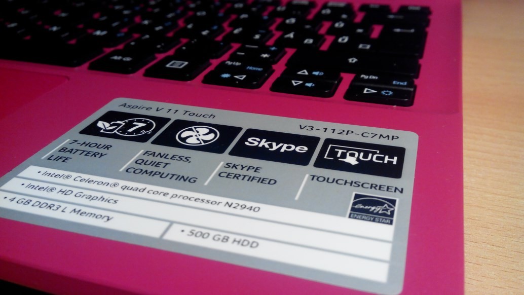 Aspire V11 / 11,6″-os Multi-Touch LED kijelző (1366×768) / Intel® Celeron® Quad Core™ N2940 / Intel® HD Graphics / 4GB DDR3 / 500GB HDD / Windows 8.1 64bit
