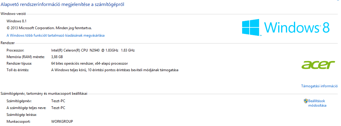 Operációs rendszer: Windows 8.1