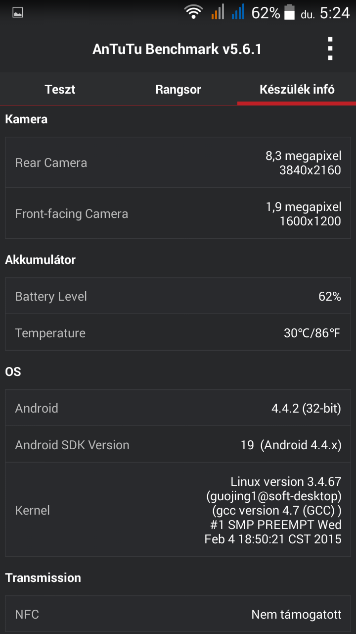 Kijelző: 5″ IPS, LCD capacitive touchscreen, 1280 x 720 pixel (HD)