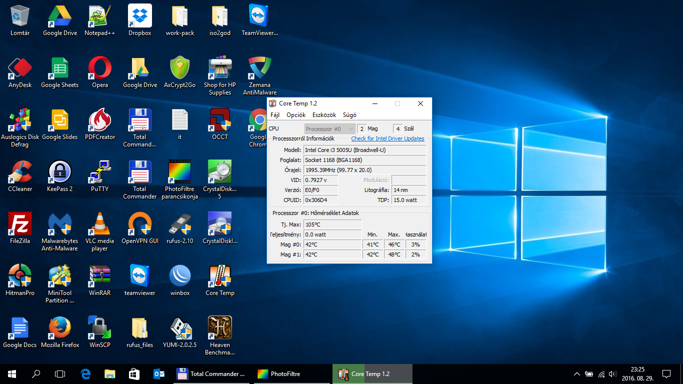 Processzor: Intel® Core™ i3-5005U Dual-Core + Hyper Threading (3M Cache, 2.0 GHz)