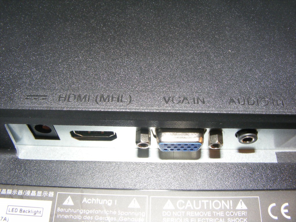 Hátul: tápcsatlakozó, HDMI (MHL), VGA IN, Audio IN, USB (touch funkióhoz).