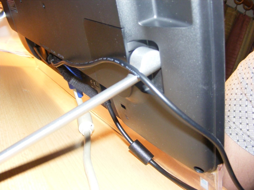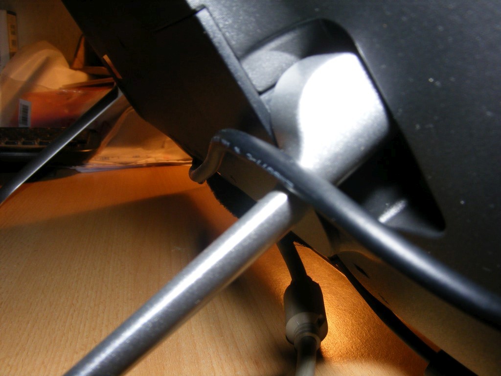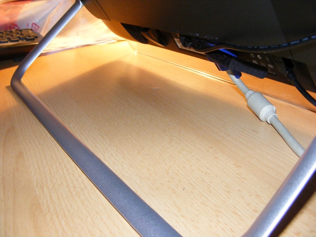 A kábelek rendezése a monitor hátulján erre alkalmatos kis kábelfogóval lehetséges. Ettől függetlenül azt mondom, hogy a kábelek kicsit nehézkesen vezethetők el.