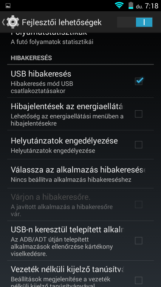 – ADB -n keresztül telepített alkalmazások ellenőrzése legyen kikapcsolva