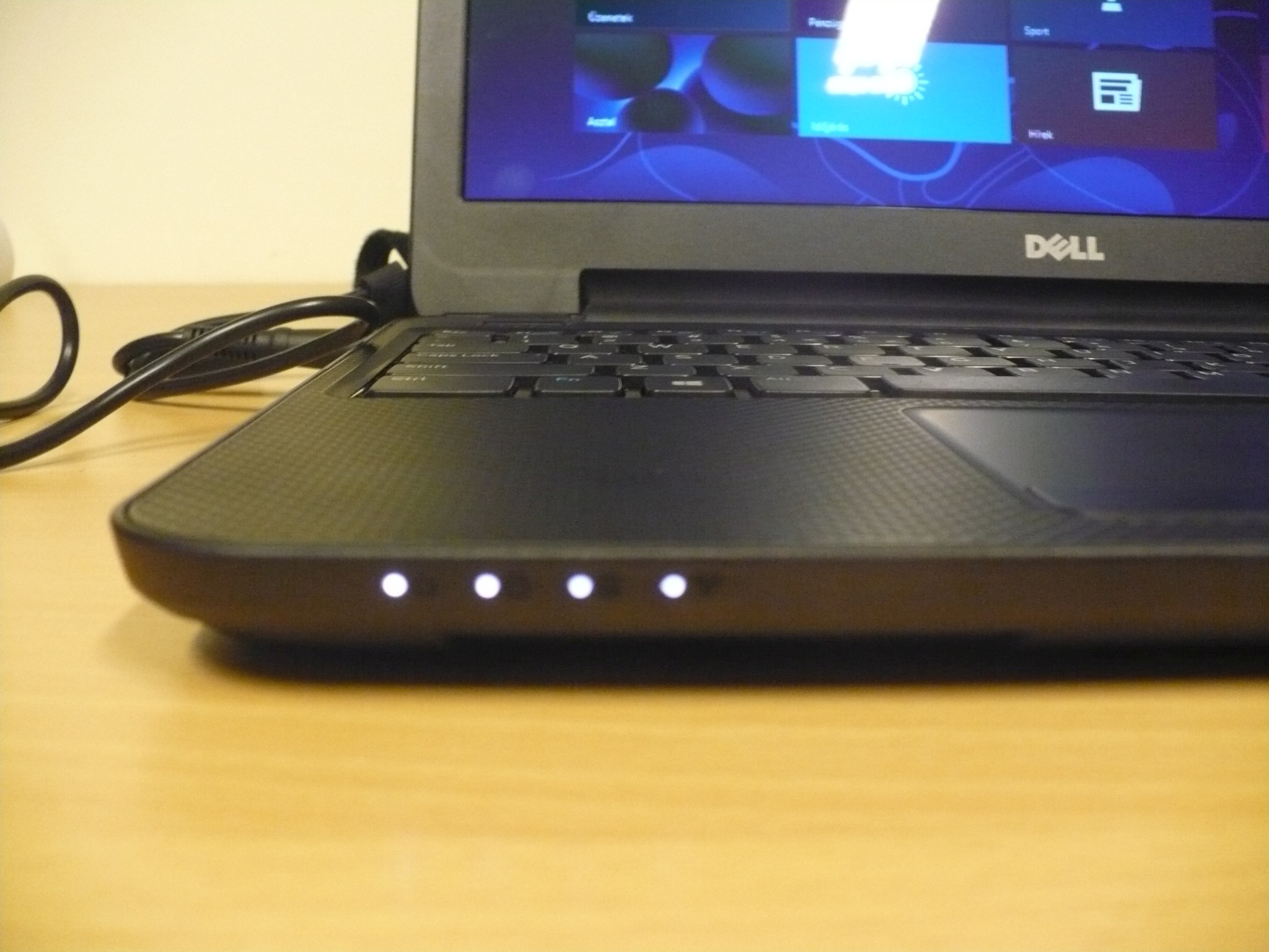 Nem vitték túlzásba az állapot jelző fényeket, de nem is kell. A bekapcsológomb a bal felső pántnál helyezkedik el. Megvilágítást nem kapott. Négy led lett a végén a bal csuklótámasz alatt, amik a power, a HDD, a battery, és a wifi állapotát jelölik. Meg megkaptuk a szokásos FN billentyűzet kombinációkat.