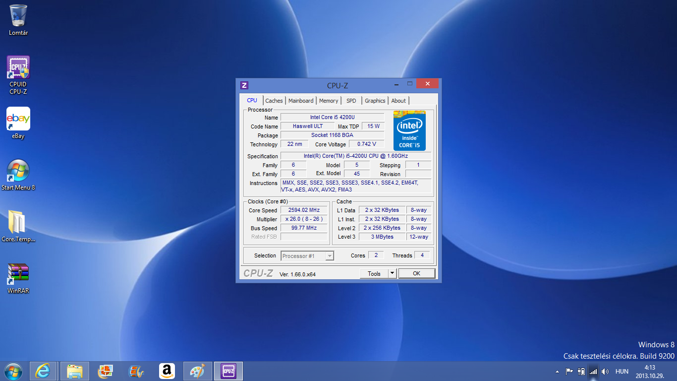 4th Generation Intel® Core™ i5-4200U processor (3M Cache, up to 2.6 GHz)