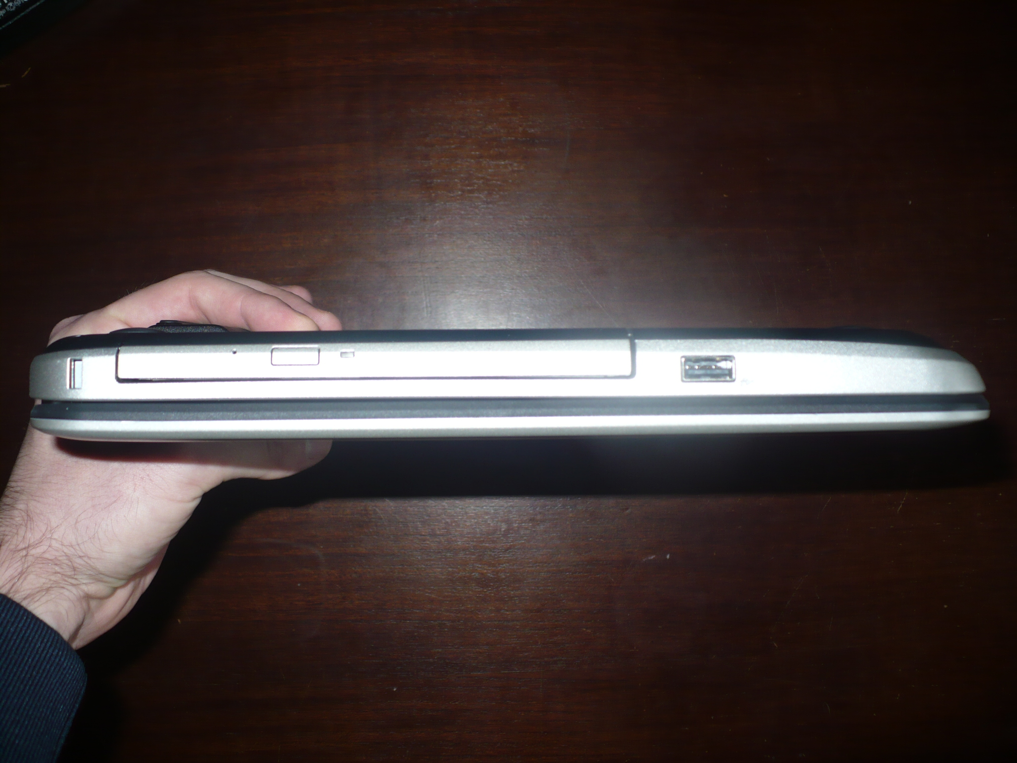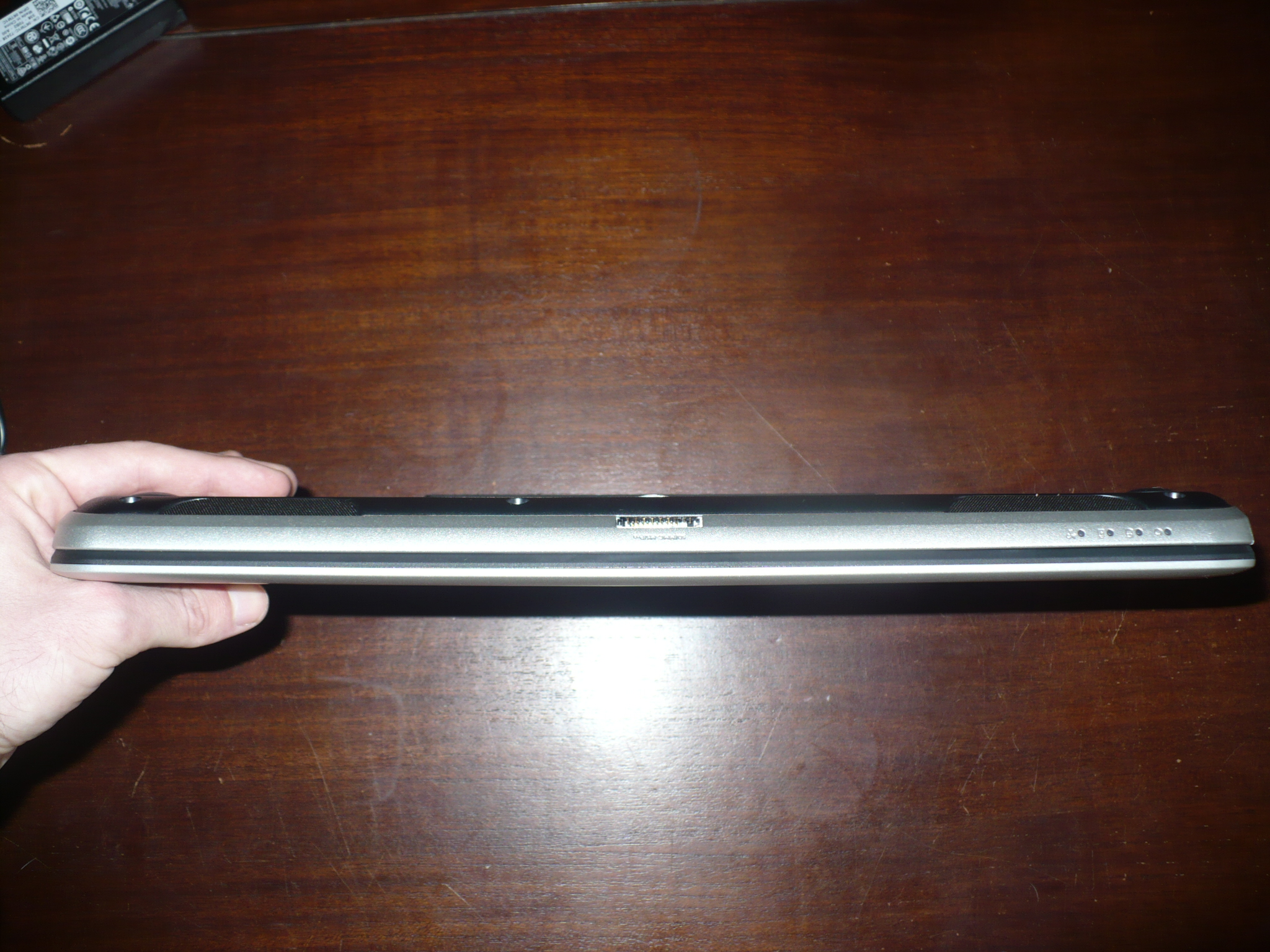 Ismételnem kell magam, mivel külsőre teljesen megegyezik a 3537-el. A kijlező rögzítés 2 pánttal, a bal oldali pántnál lévő bekapcsoló gomb, a 4 darab állapotjelző LED, a Power, a HDD, a battery és a wireless.