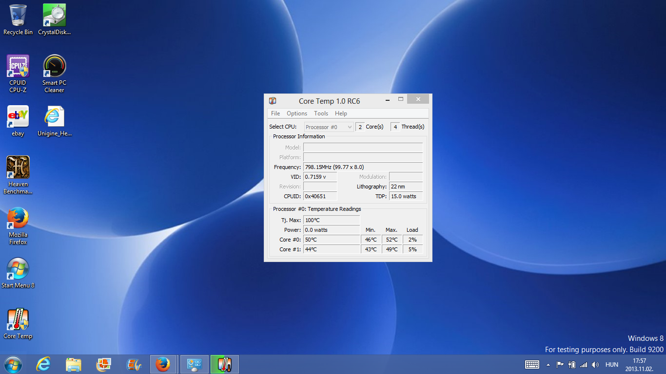 A szellőzést a baloldalon lévő hőkivezetés biztosítja. A CoreTemp szerint legmagasabb hőmérséklet általános használat során 52, a legkisebb hőfok, pedig 43 fok volt.