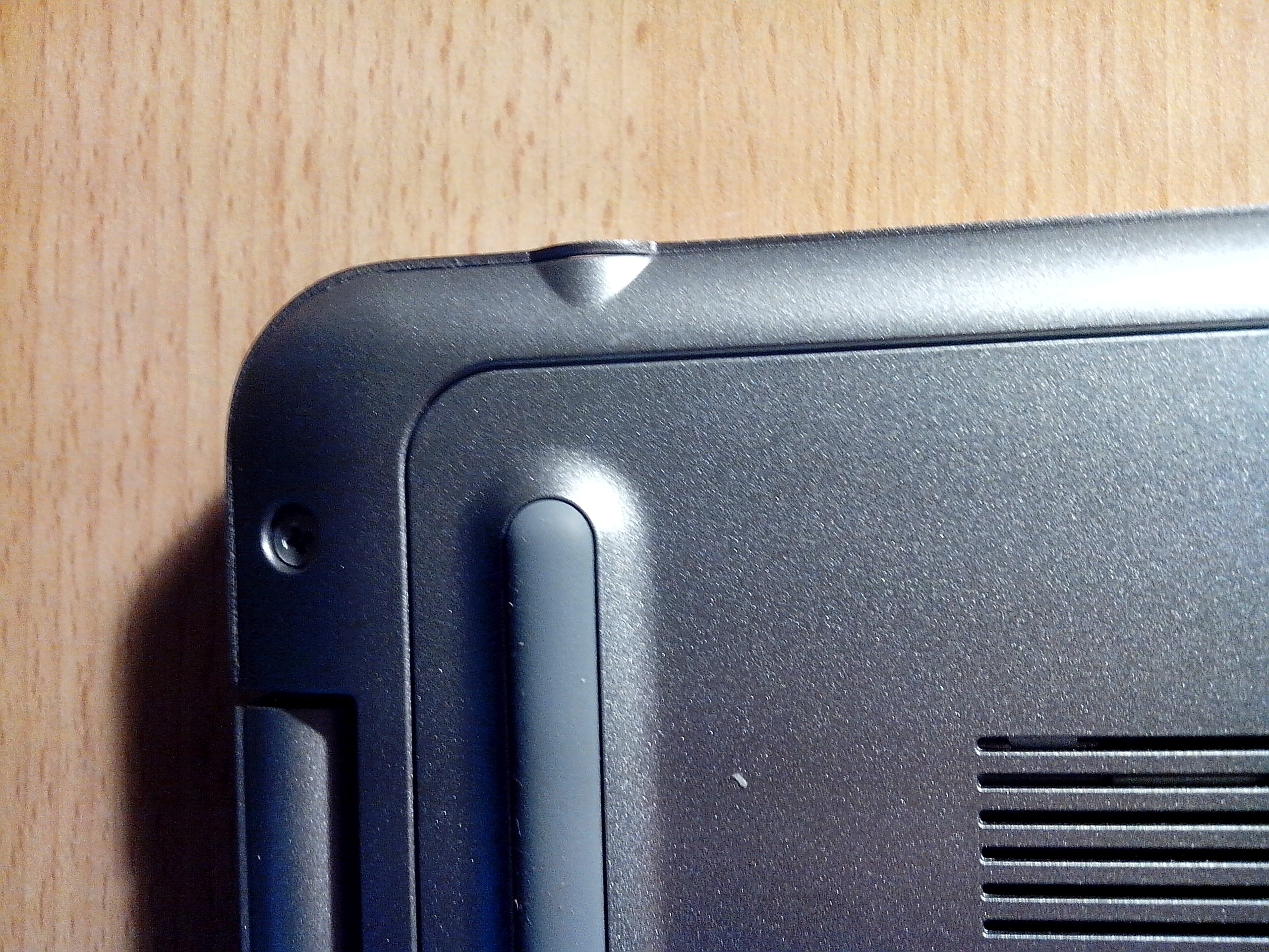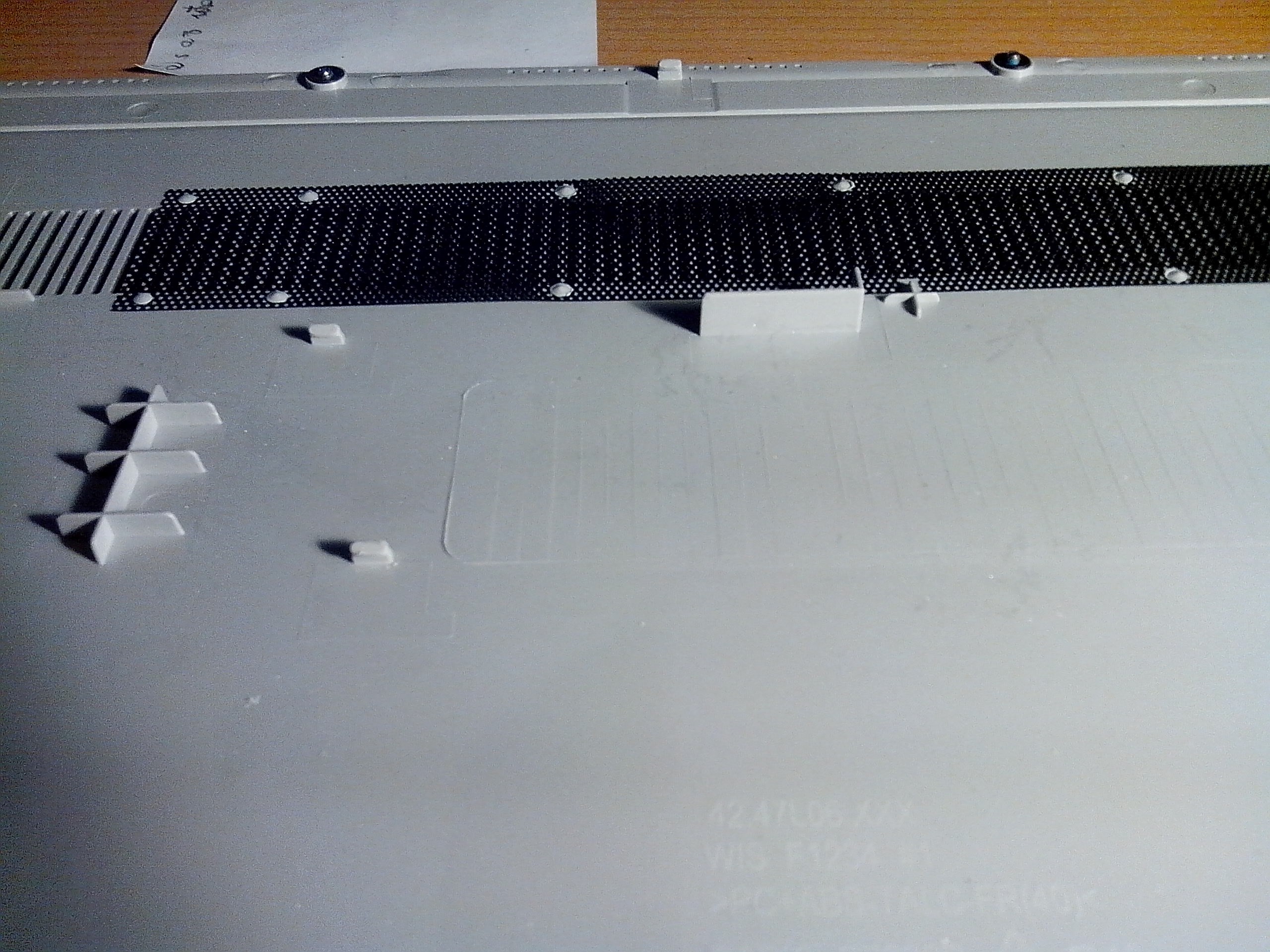 A notebook hátlapja 4 csavarral van rögzítve, viszont ezek kicsavarása után elég nehézkes az eltávolítása. Az RJ-45 csatlakozónál van egy kis rész, ahol egy kis céleszközzel „be lehet nyúlni” a hátlap alá és ki lehet pattintani a helyéről. Irtózom az ilyen megoldásoktól, mert körben végig műanyag pöckök rögzítik, amikkel óvatosan kell bánni, mert könnyen elpattanhatnak. Idővel fárad a műanyag is, így minél öregebb lesz a gép, annál könnyebben törik el a kis pöcök. 🙂