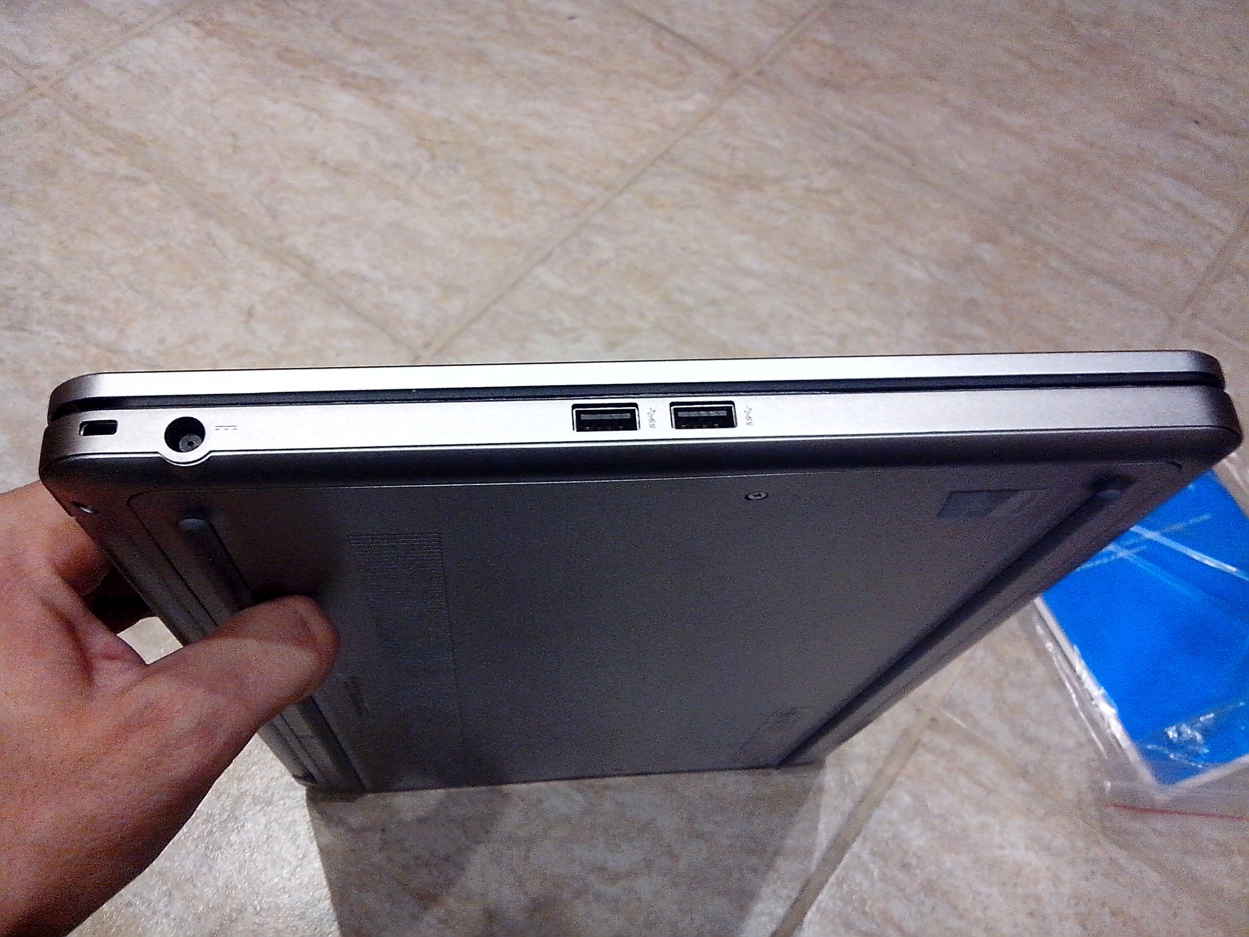 Bal oldalon kapunk 2db USB3.0-ás csatlakozót, ott találjuk a tápkábel csatlakozóját, valamint egy Kensington biztonsági zárat.