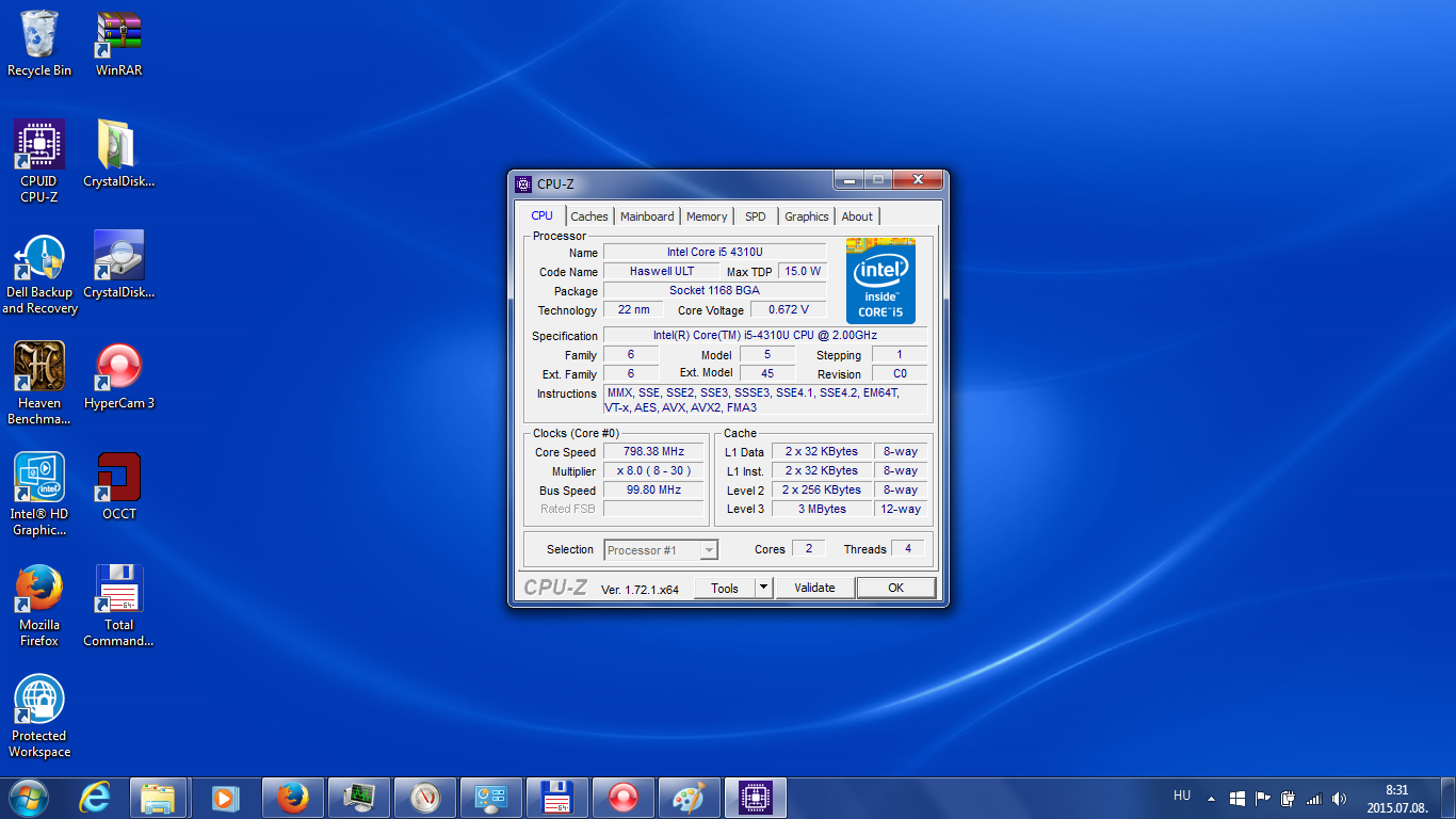 - Processzor: Intel Core i5-4310U (2,0 GHz, 3MB)