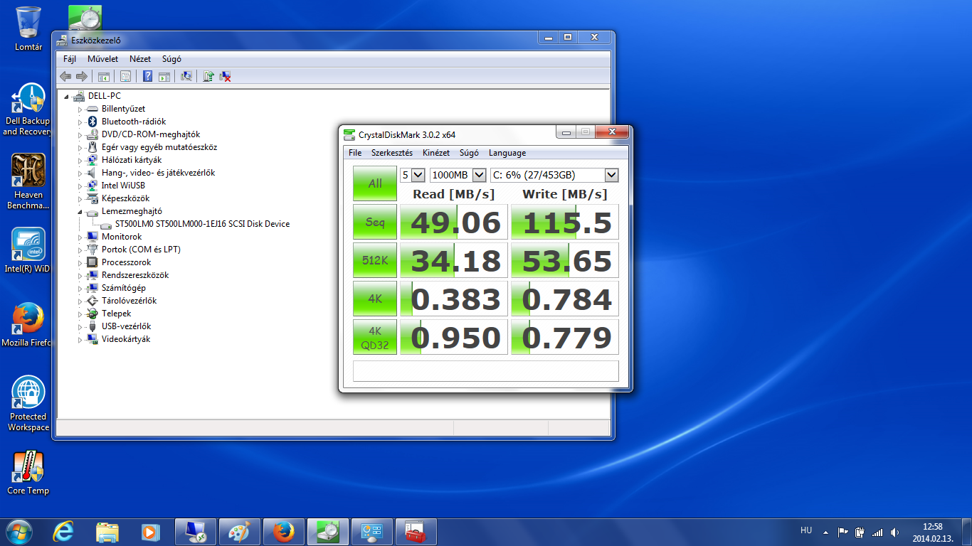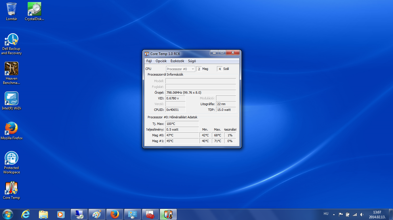 Általános használat során 55 – 42 fokos a processzor hőmérséklete! 3D teszt alatt elértük a 71 fokot!