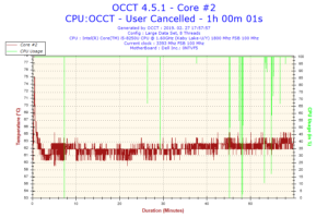 Már az OCCT indításakor lehetett hallani, hogy ennek a gépnek a hűtése profi. A ventilátor hangja maximális terhelésnél is alig hallatszik, ráadásul ehhez képest komolyabb melegedést sem tapasztaltam sehol. Ez nem jelenti azt, hogy nincs is, viszont nem kirívóan magas hőmérsékletekről lehet beszélni. A stresszt tesztet szokás szerint 1 órán keresztül futtattam. Ez alatt a processzormagok hőmérséklete nagyrészt kb. 60-65 fok közötti értéket ért el, ritkán felment 80 fok fölé is, ami még mindig alacsonynak számít szerintem és ritkán tapasztalható a mostani laptopoknál.