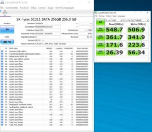 SSD terén mostanában a Dell-nél megszokhattuk a SK Hynix márkájú eszközöket. A Vostro 5471-be egy m.2-es SK Hynix SC311 típusú 256GB kapacitású SATA SSD-t tettek. A gyárilag 530MB/s-os szekvenciális olvasási sebesség sem kiemelkedő, viszont a 370MB/s-os szekv. írási teljesítmény kimondottan lassúnak számít manapság. Szóval ezt tartom a gép gyenge pontjának.