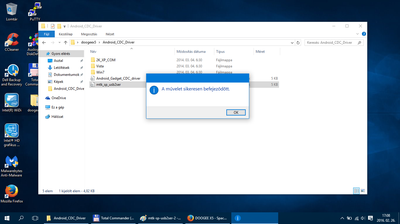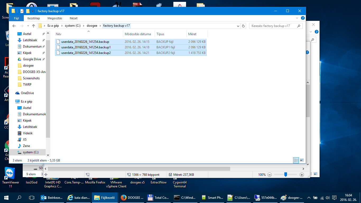 Mivel a gyári romom V17-es én a Doogee X5 – Update V17 csomagot töltöttem le. Letöltés után csomagoljuk ki egy tetszőleges helyre.