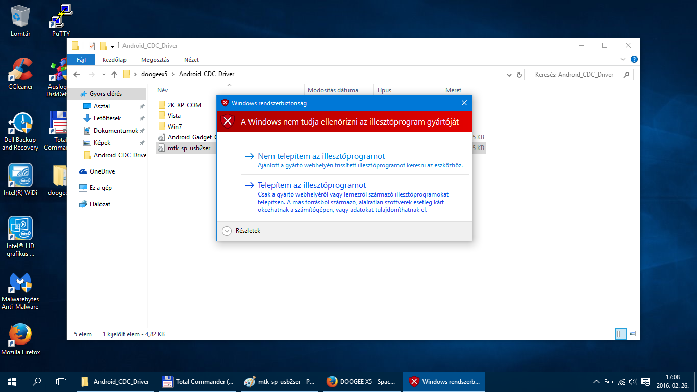 2. DOOGEE X5 – Android USB driver (preloader) telepítése