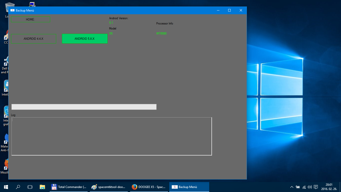A SpaceMTK Tool program letöltése, telepítése és a telefon root után a készüléken a Beállítások -> Fejlesztői lehetőségek -> USB hibakeresés opciót engedélyezzük. A SpaceMTK Tool program elindítása után kössük a telefont a gépre és kattintsunk a Connect Device feliratra. A telefon képernyőjén fel fog jönni egy üzenet, hogy „Engedélyezi az USB hibakeresést?”. A checkbox-ba tedd be a pipát, ahol a „Mindig engedélyezze erről a számítógépről” felirat van és nyomj az OK-ra. Most már a SpaceTools MediaTek Toolkit programon belül a Backup Menü és azon belül az ANDROID 5.X.X menüpontba navigáljunk. Itt válasszunk ki, illetve pipáljunk ki mindent és kattintsunk a START BACKUP:Lollipop! gombra. A mentés egy SPFT mappában lesz megtalálható a microSD kártyán. Ezt a mappát és tartalmát másoljuk fel a gépünkre, hogy meglegyen. Elméletileg SP Flash tool segítségével visszatehető ez a mentés, de még nem volt időm kipróbálni. A microSD kártya min. 8Gb-os legyen! A mentés sokáig fog tartani, kb. 30-40 perc. Érdemes a SuperSu beállításainál az alapértelmezett hozzáférést a kérdez opció helyett engedélyezre állítani, majd mentés után visszaállítani.