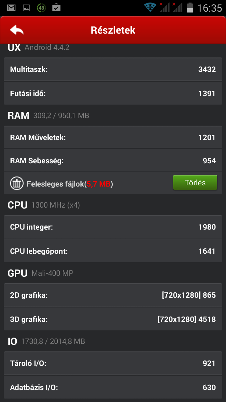 MediaTek Soc dolgozik az 5 col alatt, ami szépen meghajtja az Android 4.4.2-es oprációs rendszerünket. Az MT6582-es processzor, 1GB memória, 8GB belső tárhely /max. 32GB-os kártyával bővítehtő/, Mali-400MP2-es gpu tökéletesen elég a mindennapi használatra és egy kis szórakozásra. A wifi is gyorsan működik, a GPS gyorsan talál jelet!