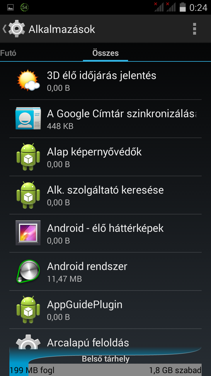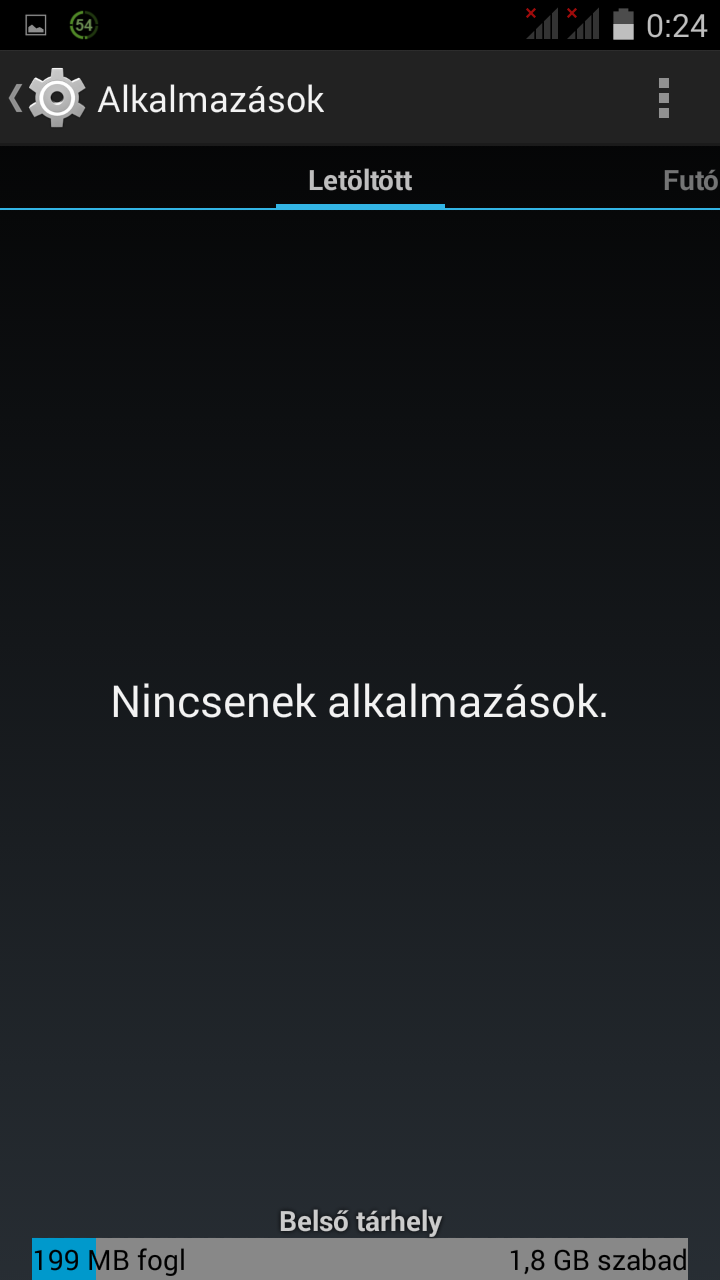 A tárhely mérete gyárilag, amikor még nincs belakva az Android: