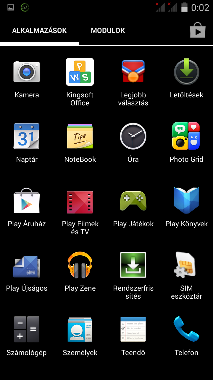 A szokásos Android rendszer, és Google alkalmazásokon kívűl kapunk néhány applikációt előtelepítve: