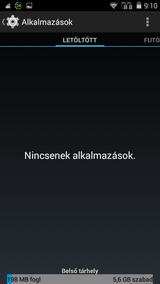 A tárhely mérete gyárilag, amikor még nincs belakva az Android: