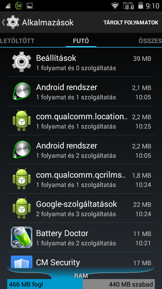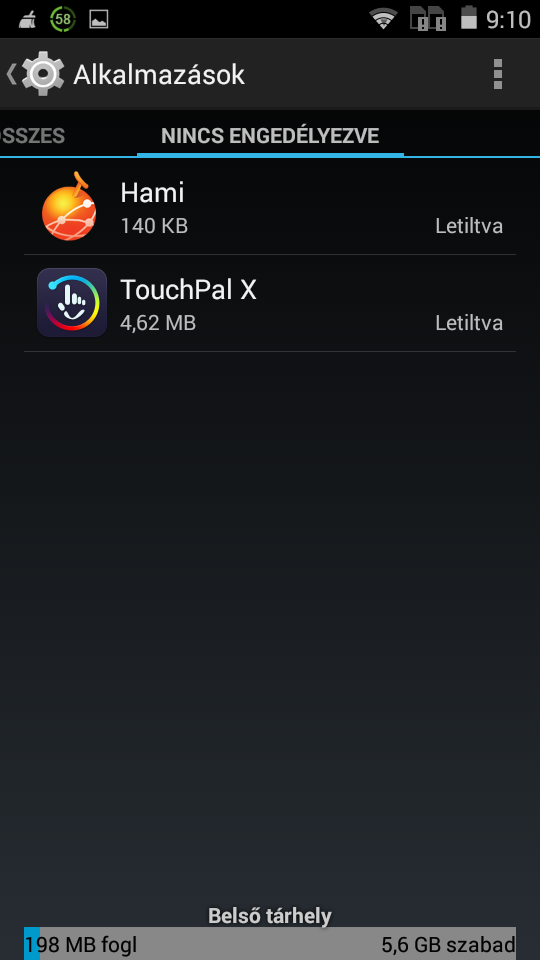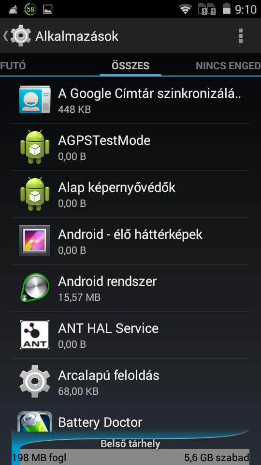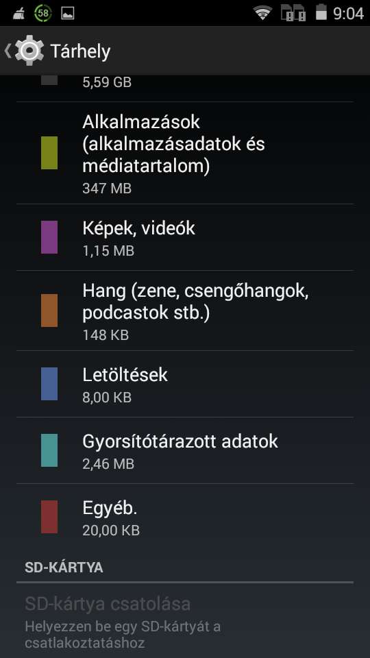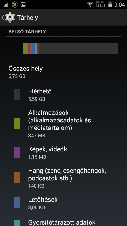 Alkalmazások, tárhely, memória: