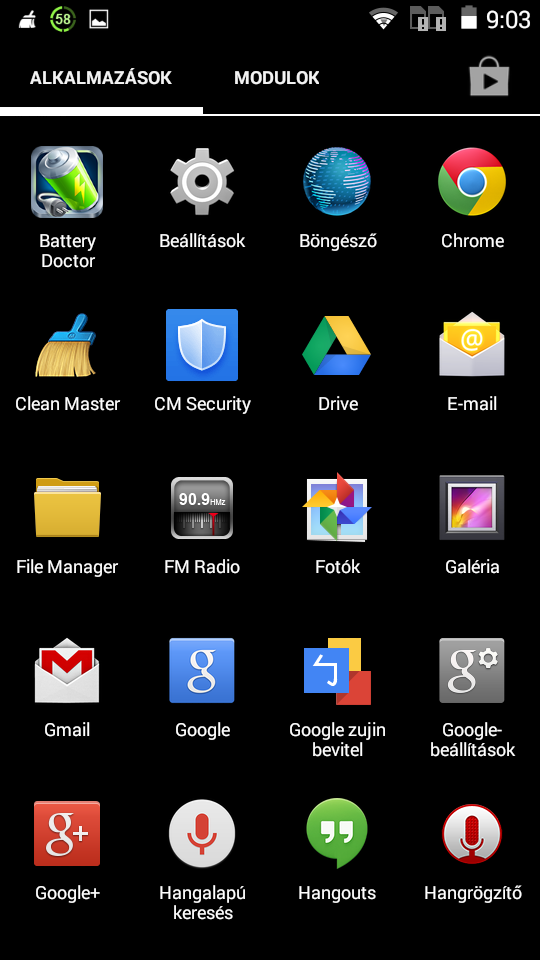 Az android – google alkalmazásokon kívül kapunk Battery Doctor, Clean Master, CM Security, WPS Office-t előtelepítve. Ezeket a szoftverket a GSmart eszközein már megszokhattuk!