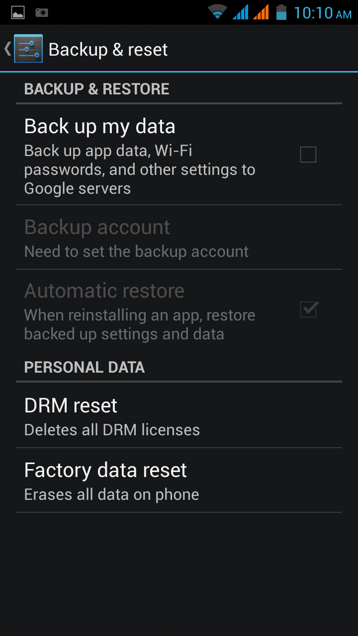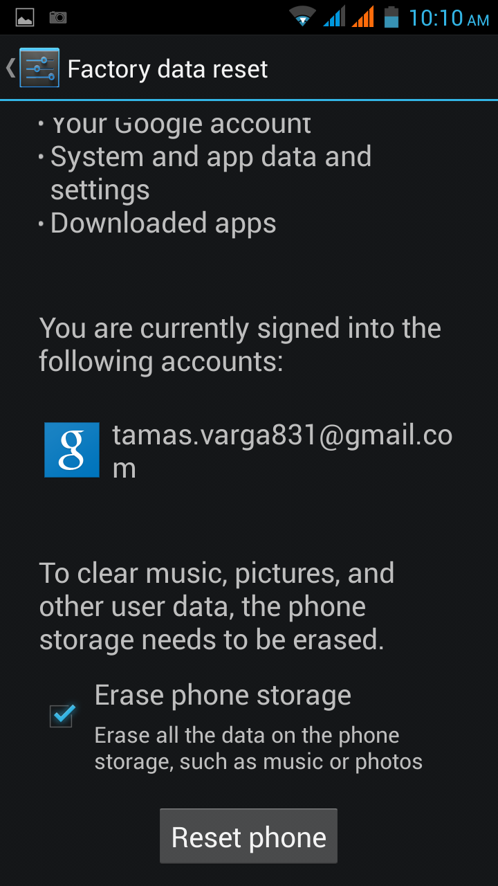 Beállítások (Settings) – Mentés és Gyári adatok visszaállítása (Backup & reset) – Gyári adatok visszaállítása (Factory data reset) – Törölj mindent, a telefonról!