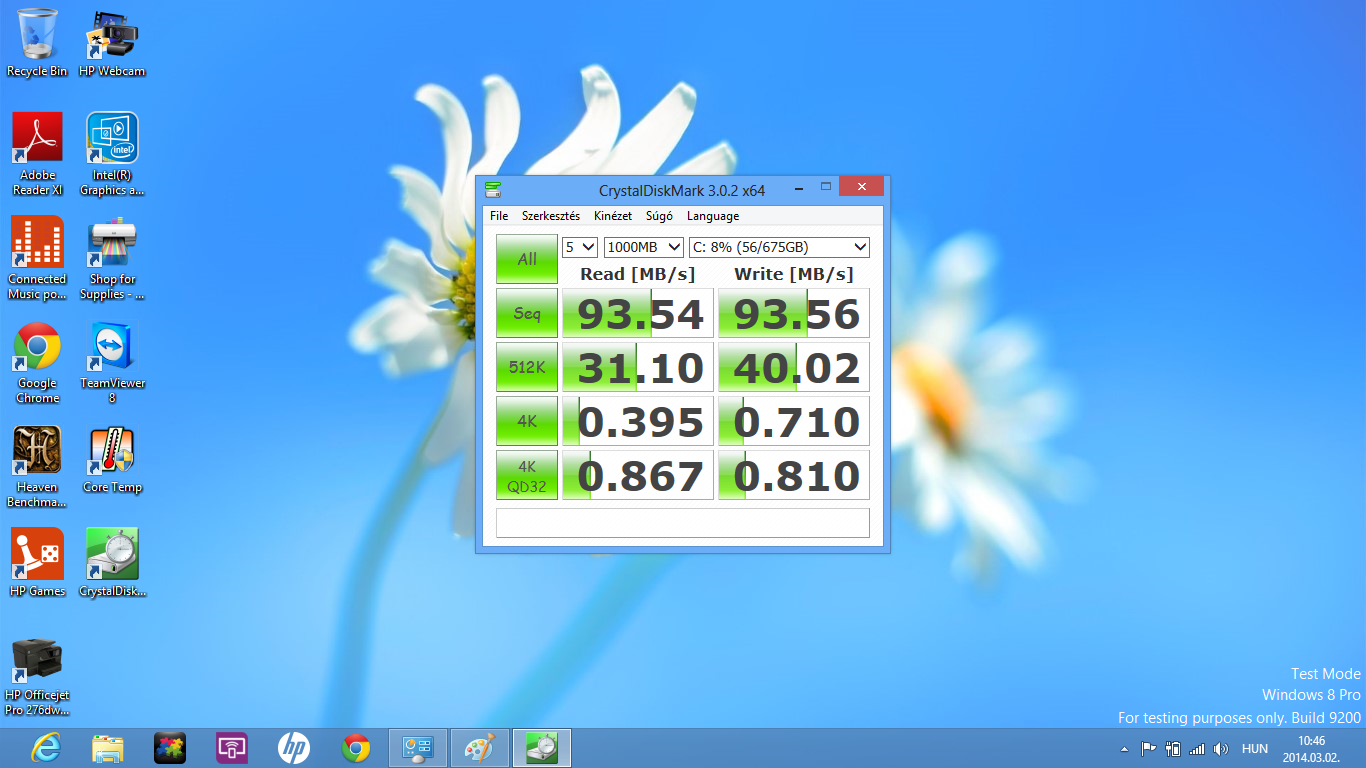 Merevlemez: WDC WD7500BPVT-60HXZT3 (750 GB, 5400 RPM, SATA-II)