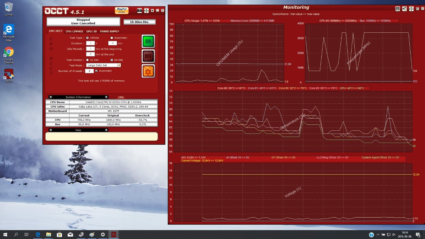 Intel® Core™ i3-8130U Intel® UHD Graphics 620 grafikus vezérlővel (2,2 GHz-es alapfrekvencia, Intel® Turbo Boost technológiával akár 3,4 GHz, 4 MB gyorsítótár, 2 mag)
