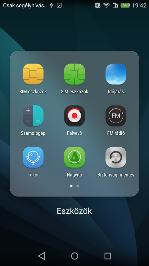 - Alkalmazások: diktafon, ébresztőóra, naptár, névjegyzék, számológép