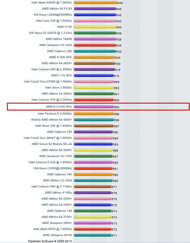A cpubenchmark.net listája alapján sem foglal el előkelő helyet a processzor, sőt a lista végefelé kullog: