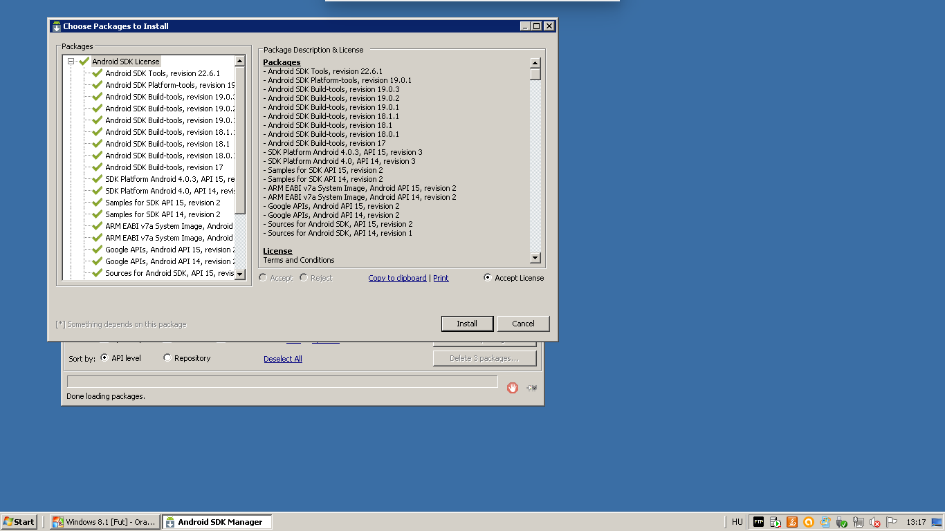 2 – lépésként telepíteném az android SDK-t