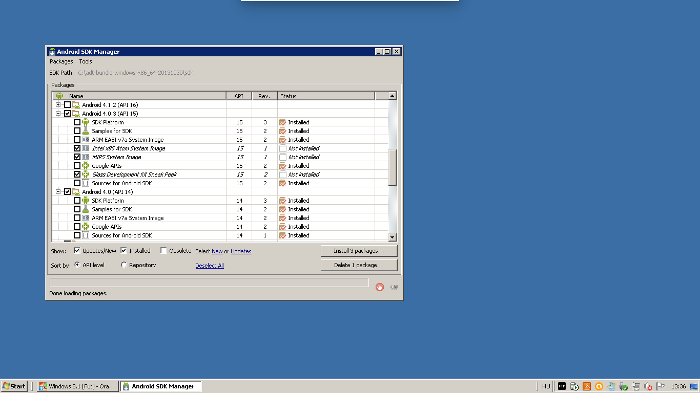 Szerencsére nekem már volt Android SDK telepítve a gépemre, de innen letölthető: