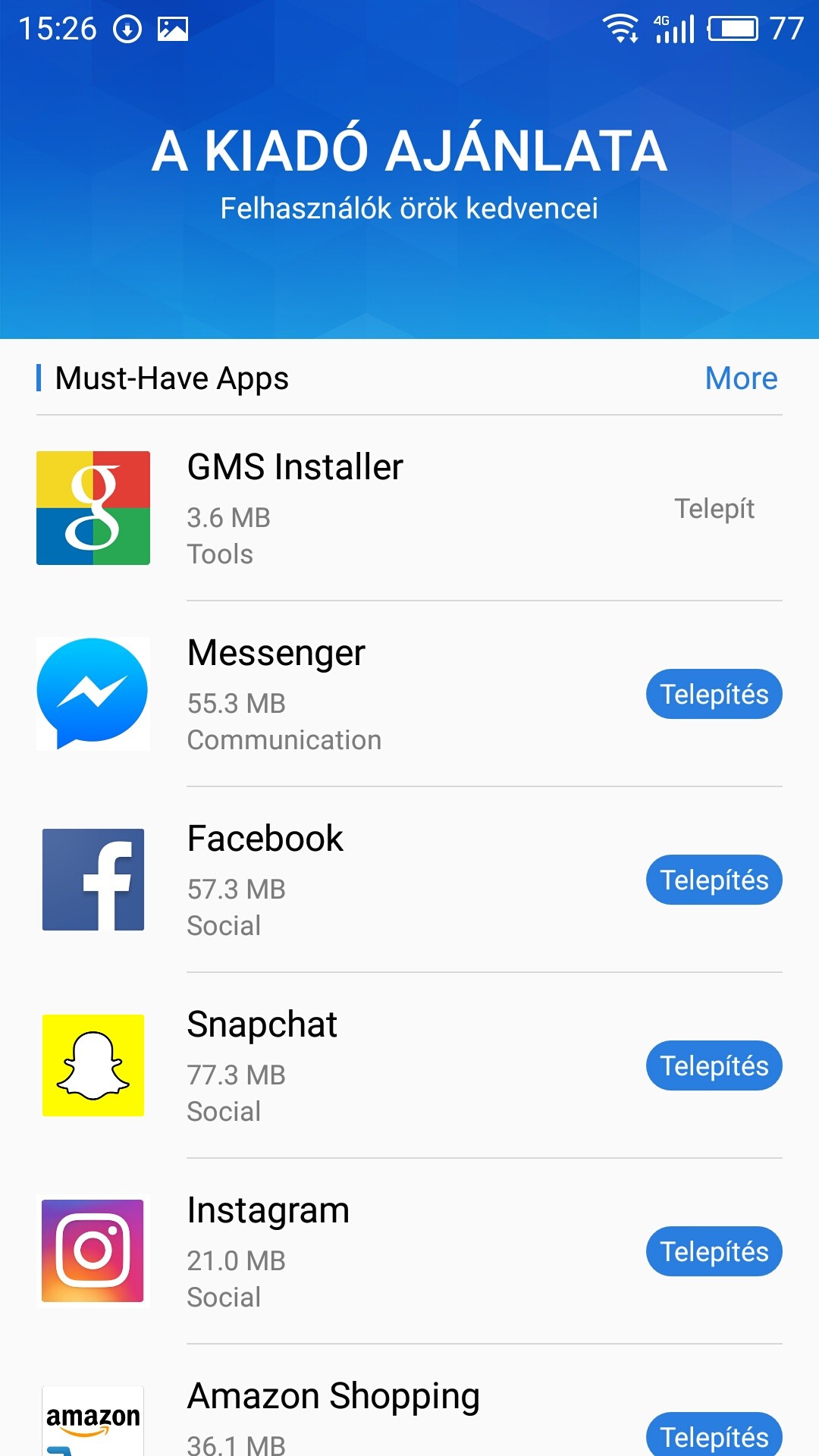 - Ebben az esetben fent volt a Google Play és tudtam Google fiókot beállítani, csak a névjegyek szinkronizálásának élesítéséhez kellet telepíteni a Hop Apps – Google Services alkalmazást. A Hot Apps alkalmazást elindítva vállaszuk ki, majd telepítsük a Google Services alkalmazást. Telepítés után a Beállítások -> Más fiók menüpontba navigálva már meg fog jelenni a Névjegyek szinkronizálása opció, a Google-fiókok szinkronizálási beállításainál.