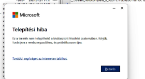 Telepítési hiba. Ez a termék nem telepíthető a kiválasztott frissítési csatornában.