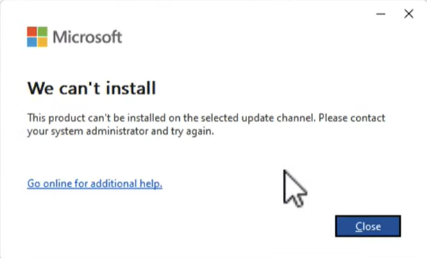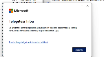 Telepítési hiba. Ez a termék nem telepíthető a kiválasztott frissítési csatornában.
