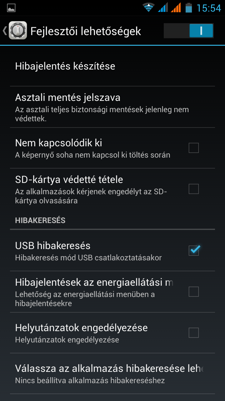 Fejlesztői lehetőségek bekapcsolása: