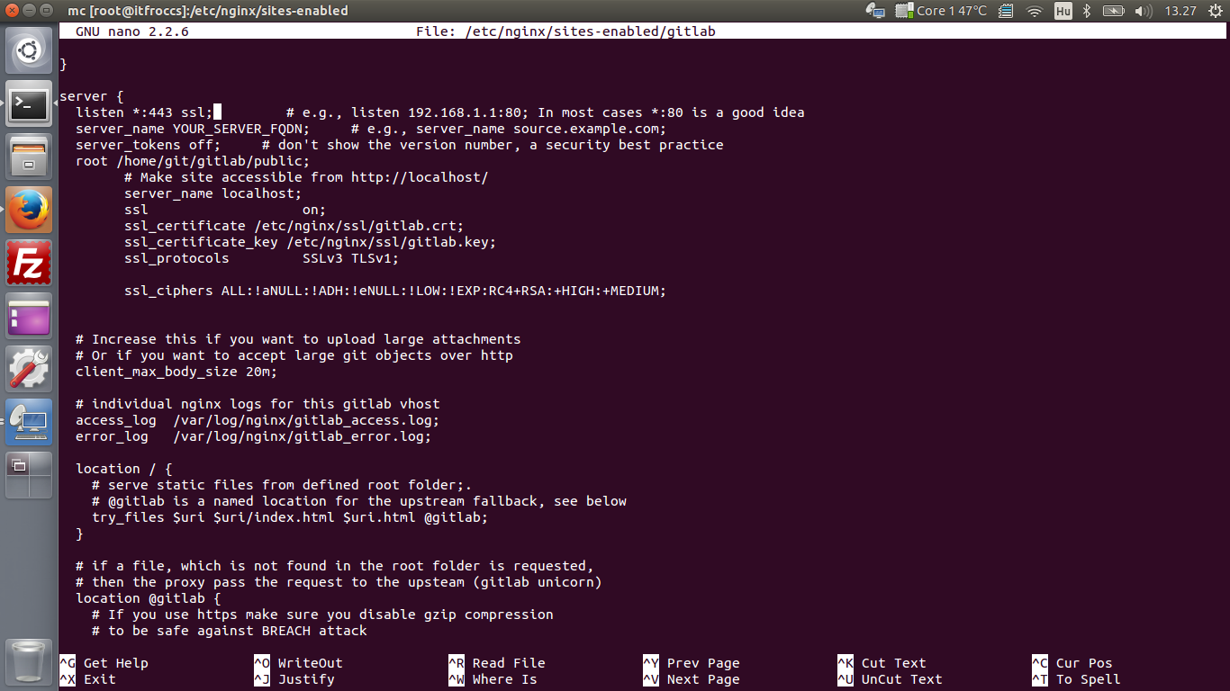 sudo nano /etc/nginx/sites-enabled/gitlab
