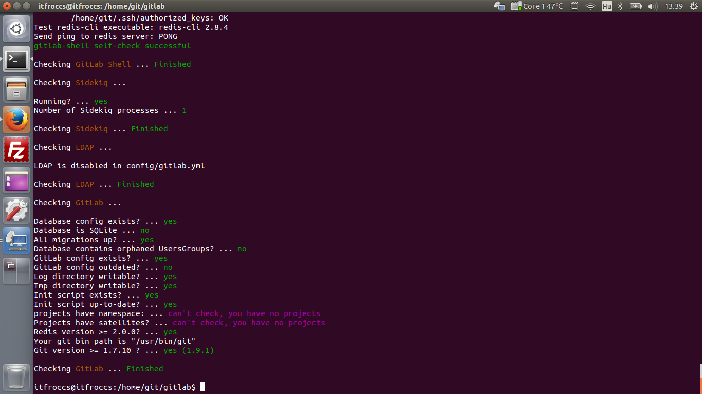 sudo -u git -H bundle exec rake gitlab:check RAILS_ENV=production