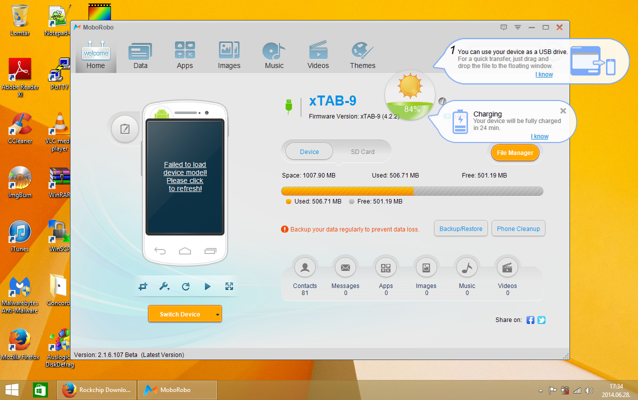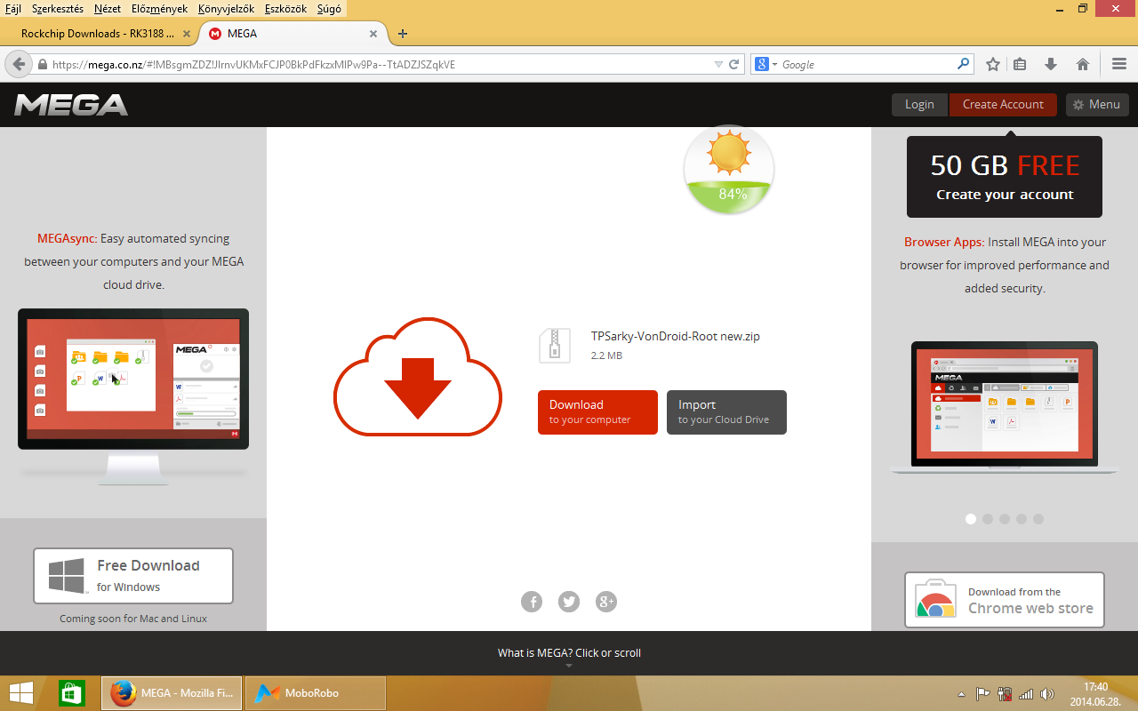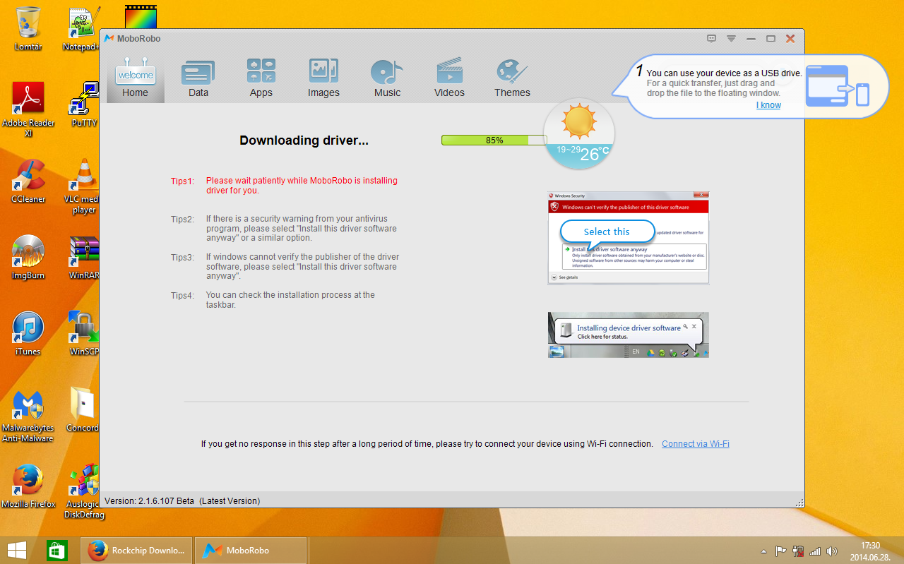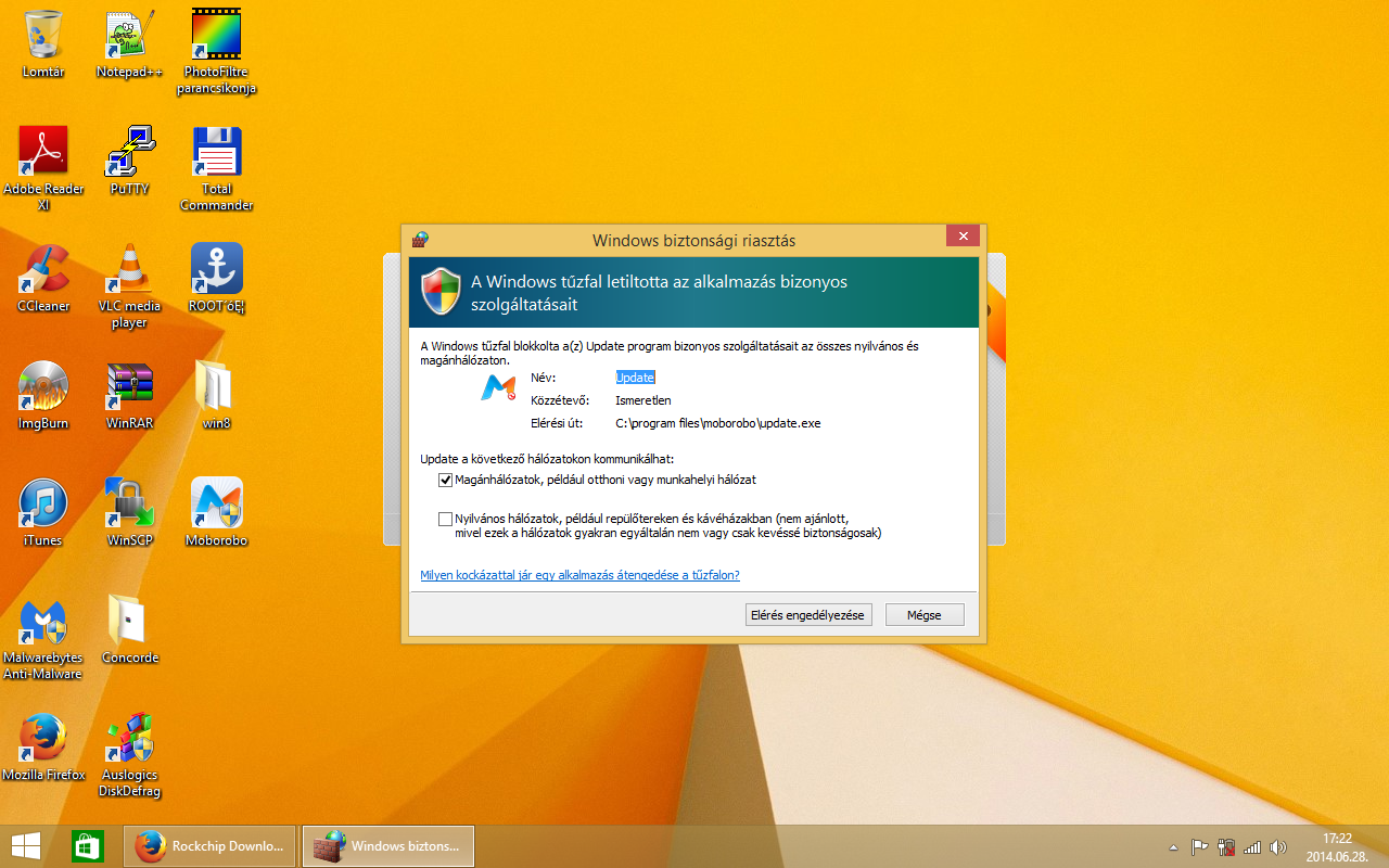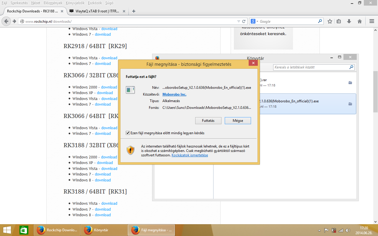 A letöltött Rockchip driver-t kicsomagoltam az asztalra, egy win8 nevű mappába, majd a letöltött Moborobo versie 2.1-es programot telepítettem a gépemre! (next-next stb…) Indulás után várjuk meg, amíg a program automatikusan telepíti a frissítéseket.