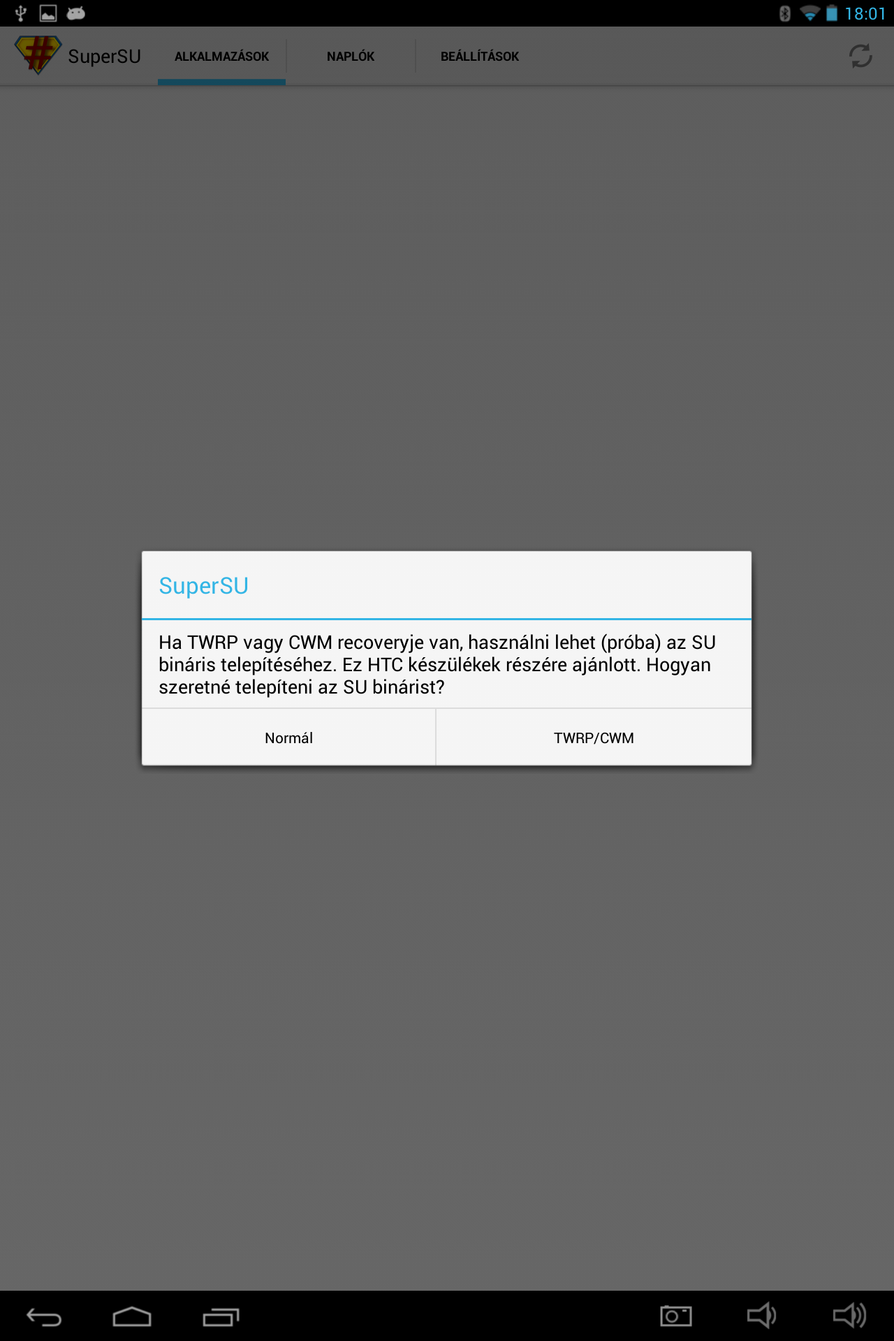 Telepítésnél a normálra kattints! Ez pedig ugye a root alkalmazásunk, aminek segítségével tudunk eléréseket vezérelni.