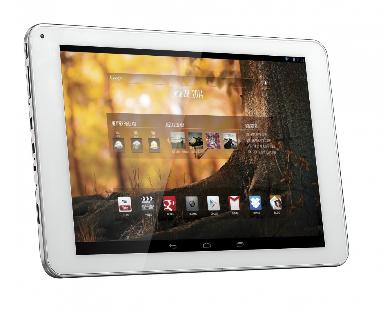 Kijelző: 9″, PLS, 1920 x 1280 px, 10 pontos kapacitív multi-touch – Processzor: Rockchip 3188, Quad-Core Cortex A9 1.8 GHz – Memória: 8 GB ROM, 2 GB RAM – Android Jelly Bean v4.2 – WiFi, Bluetooth- Elő és hátlapi kamera, HDMI – MinDigTV alkalmazás – WayteQ Táblamagazin