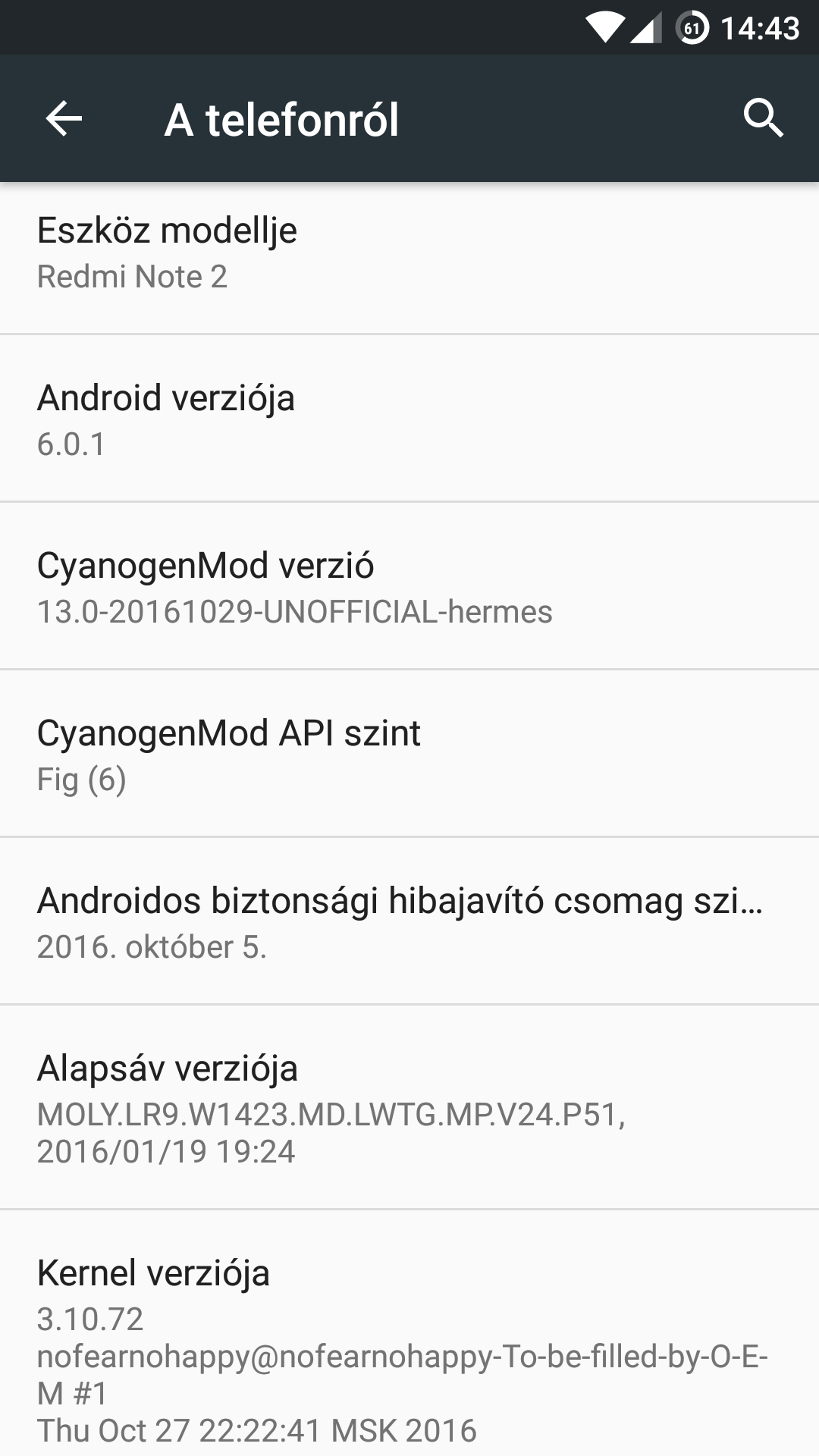 Szia, nem igazán volt még stabil a rom. Néha fagyások jelentkeztek ami eléggé zavaró volt. Várok még stabilabb kiadásra. Valójában az akkumulátor üzemidővel volt gondom és ezért akartam kipróbálni a CM portot, de ez ugye még messze van(volt) a stabil verziótól. Aztán megtaláltam a Xiaomi Redmi note 2 Tool eszközt, aminek segítségével növelhetjük az akkumulátor kapacitását, de ez az eszköz csak root joggal megy rendesen. A Redmi Note 2 Tool nekem csak egy MIUI.HU oldalon letöltött MIUI7-es root joggal ellátott magyar romban működött jól, amit TWRP segítségével telepítettem. De mivel mindig frissíteni akart MIUI8-ra, ezért rászántam magam, de nem bíztam a véletlenre. Itt írtam a Xiaomi Mi Max Official Xiaomi ROM telepítése EDL – MIUI Flash folyamatról. Ugyan ezt a folyamatot alkalmaztam Redmi Note 2 esetében is a Global Stabil verziót dobtam fel. Most MIUI Global 8.1 Stabil 8.1.2.0(LHMMIDI) MIUI van a telefonomon. Egész jónak mondanám kb. 1-1.5 naponta dobom töltőre általános használat során. A CM-re visszatérve itt a miui.hu fórumán azt írják már a kamera is működik benne és egész jó a rom. Szóval nekem egyelőre jobban bejön még mindig a MIUI. Most még várok valami 6-os „stabil” romra. Üdv, Tomi