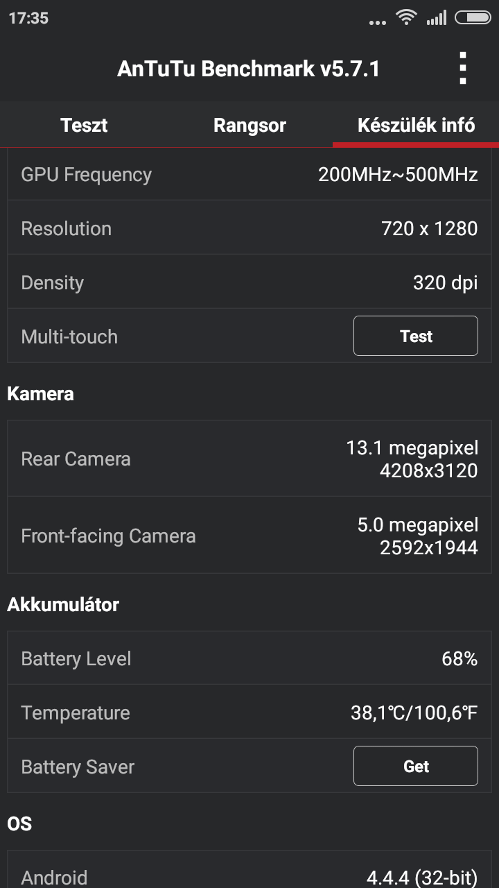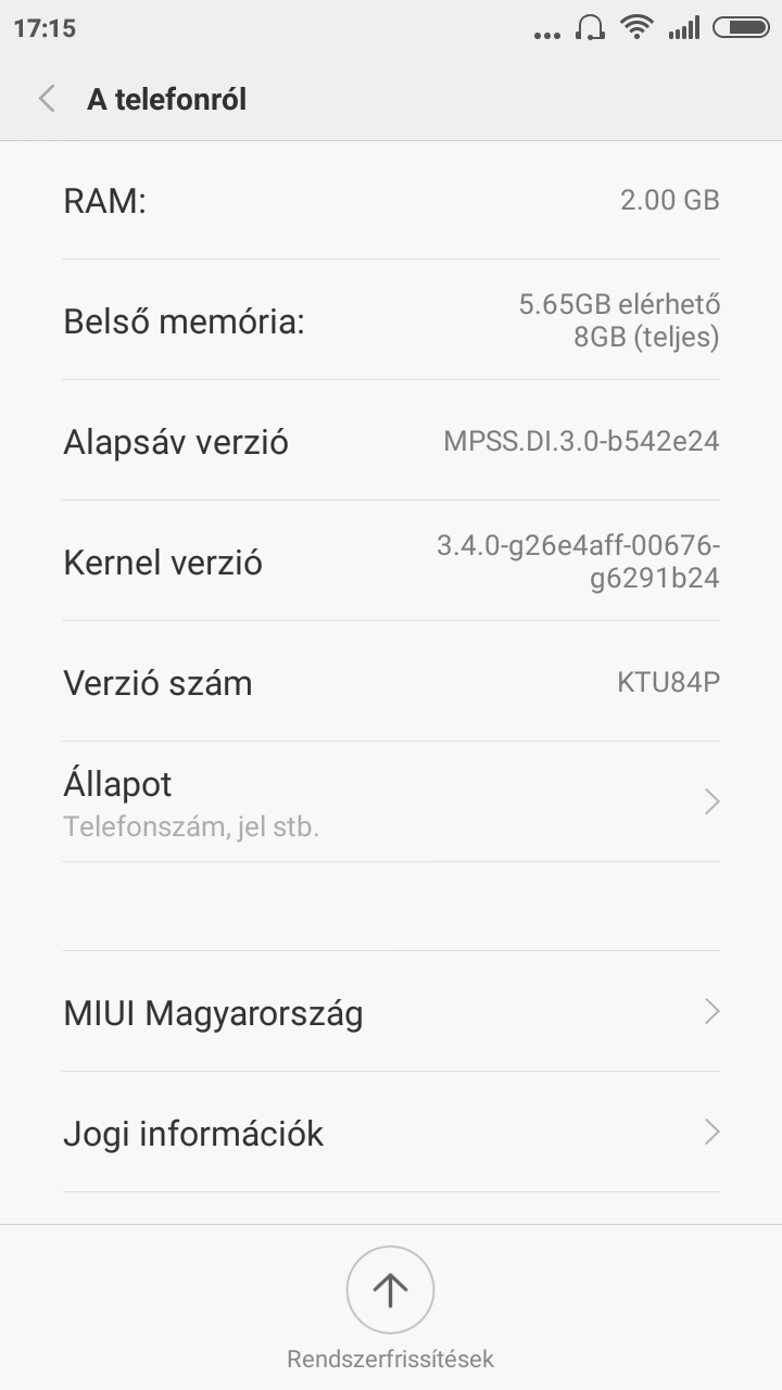 Operációs rendszer: Android™ 4.4 Kit Kat (Android Play támogatással) – MIUI V6 felület, magyar nyelv támogatott