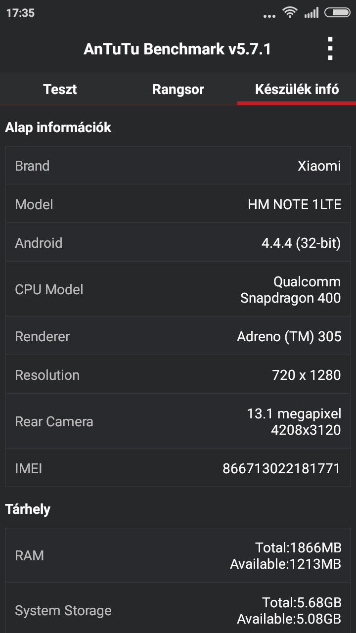 Specifikáció a gyártó/forgalmazó oldalán: Xiaomi Redmi Note 4G