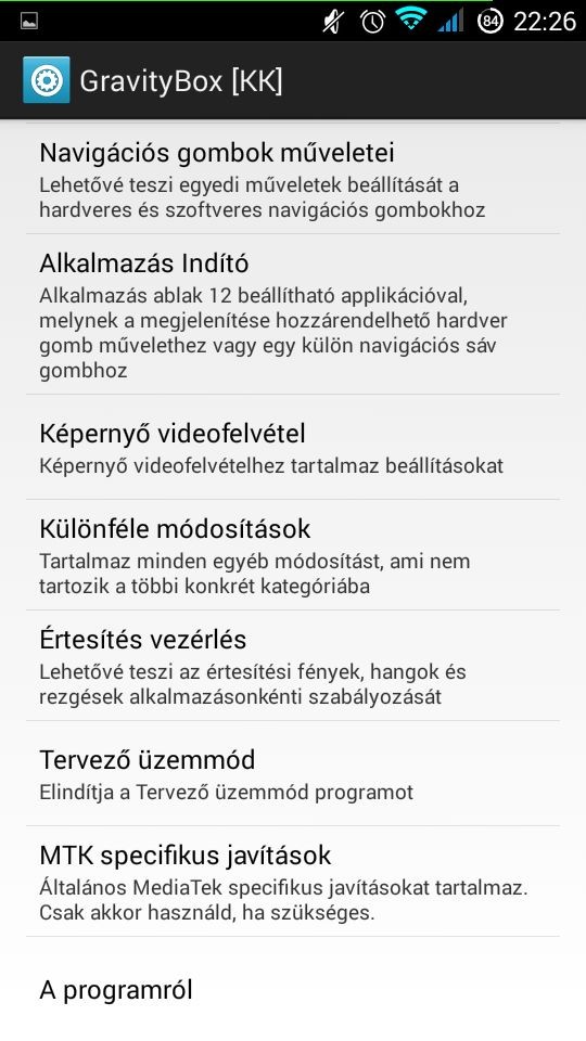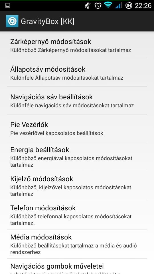 Miután feltettem a GravityBoxot (vigyázat, van külön JB és KK verzió, a ROM-odnak megfelelőt tedd fel), rájöttem, hogy egyelőre ez nekem bőven elég, mert szinte mindent tud, amit eddig hiányoltam a ConCorde 5500 gyári ROM-jából, sőt talán még többet is. Jöjjön pár általam hasznosnak tartott funkció a teljesség igénye nélkül: